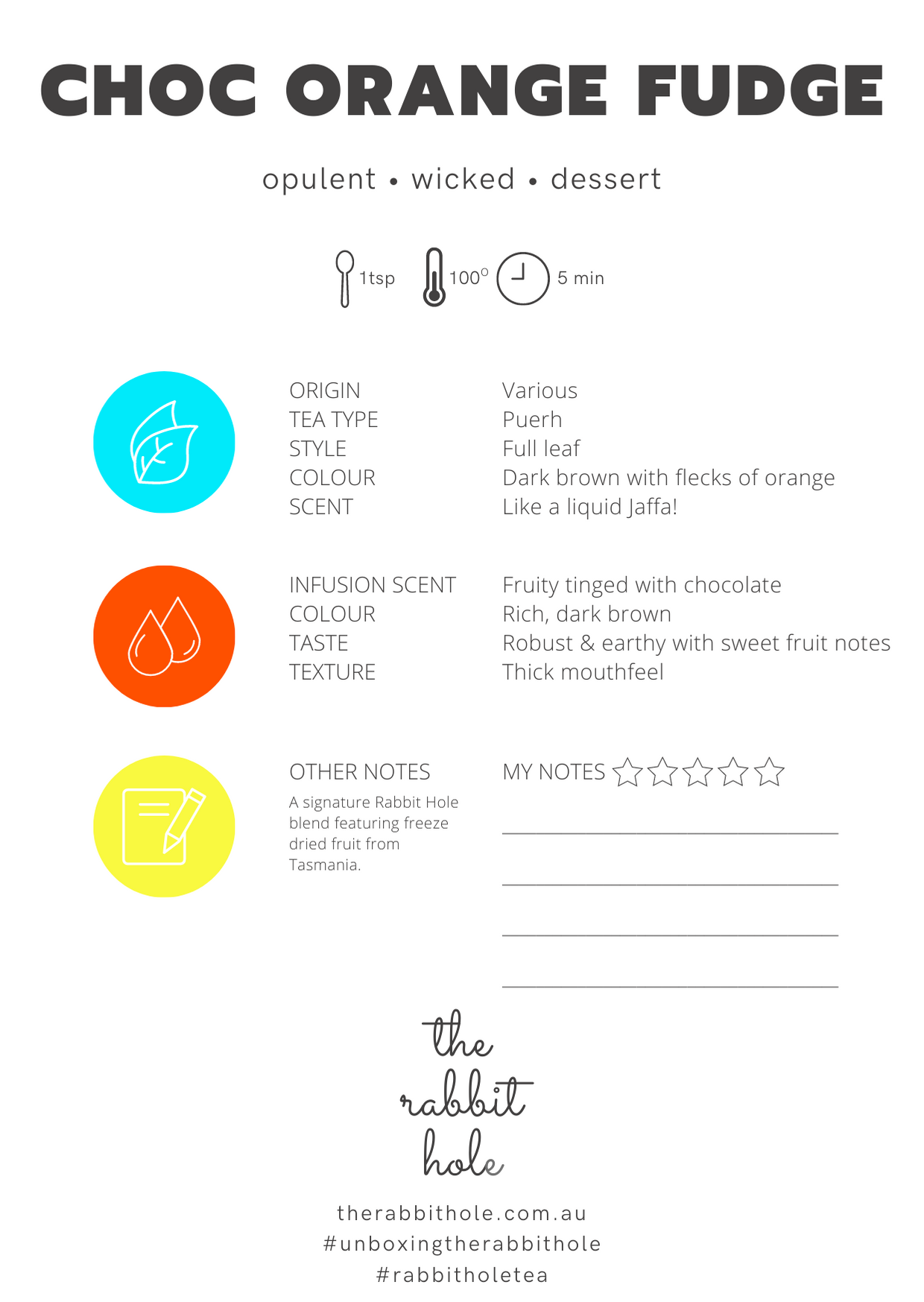 Ingredients: Black tea, cacao nibs, freeze dried orange, orange essence.