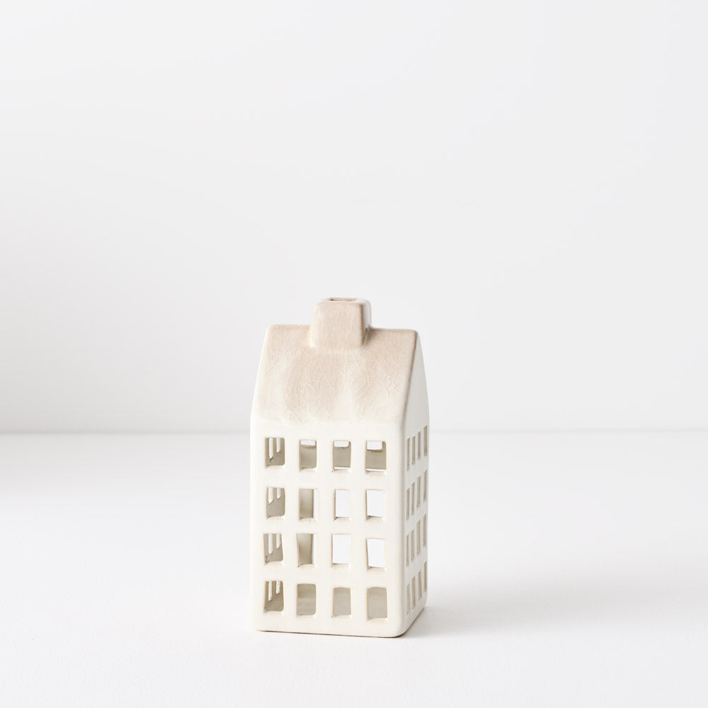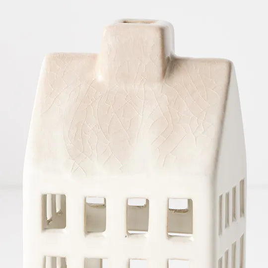 This small ceramic house-shaped lantern from Floral Interiors adds a subtle, elegant charm to any setting. Ideal for Christmas décor or year-round ambiance, it enhances your space with soft, inviting light. Please note, the lantern is sold without a candle.