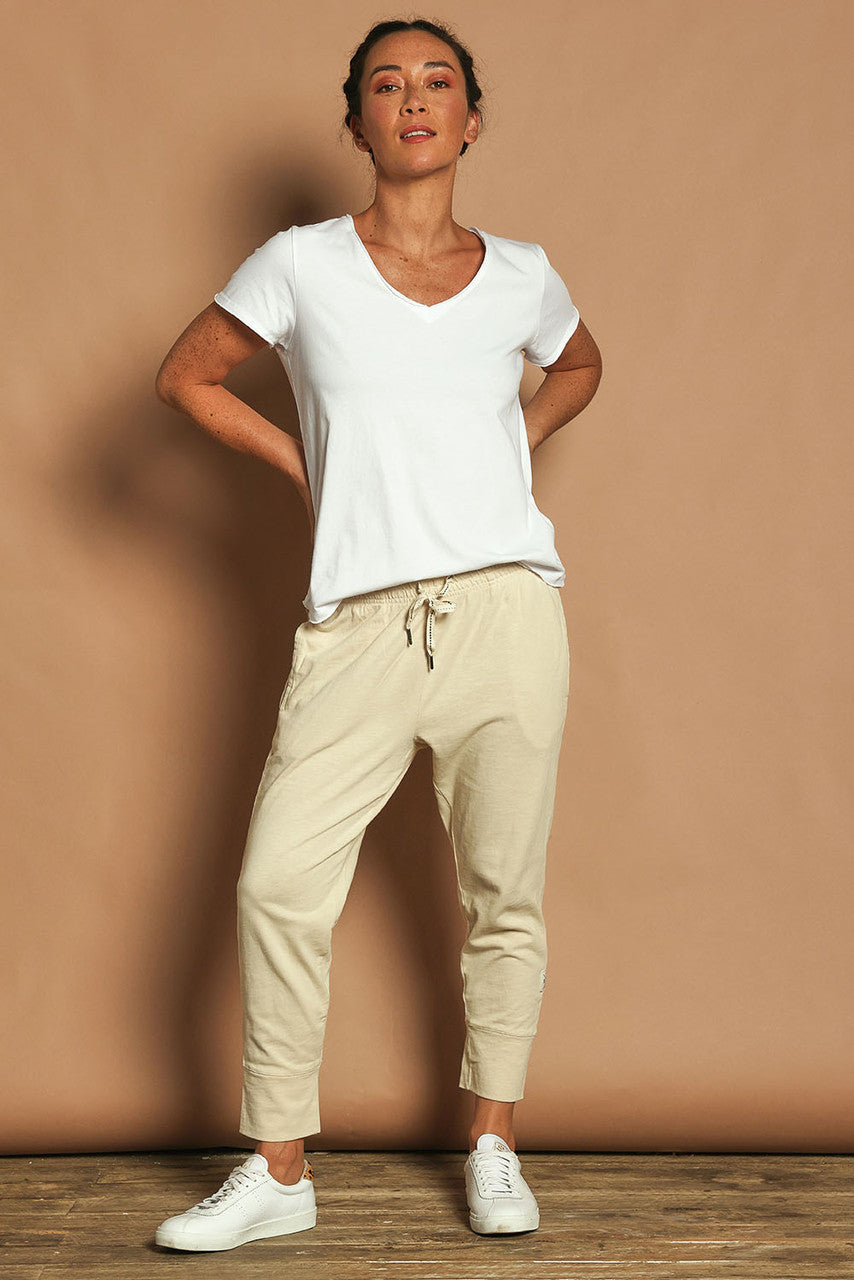 Regular price $69.95 Save $-69.95Made from 100% cotton slub jersey, Elm’s best-selling Brunch pant provides a relaxed roomy fit that is versatility plus! With a comfy fit elastic waistband paired with an adjustable tie, these cropped length pants feature large cuff detail and will be your go-to straight out of the box!