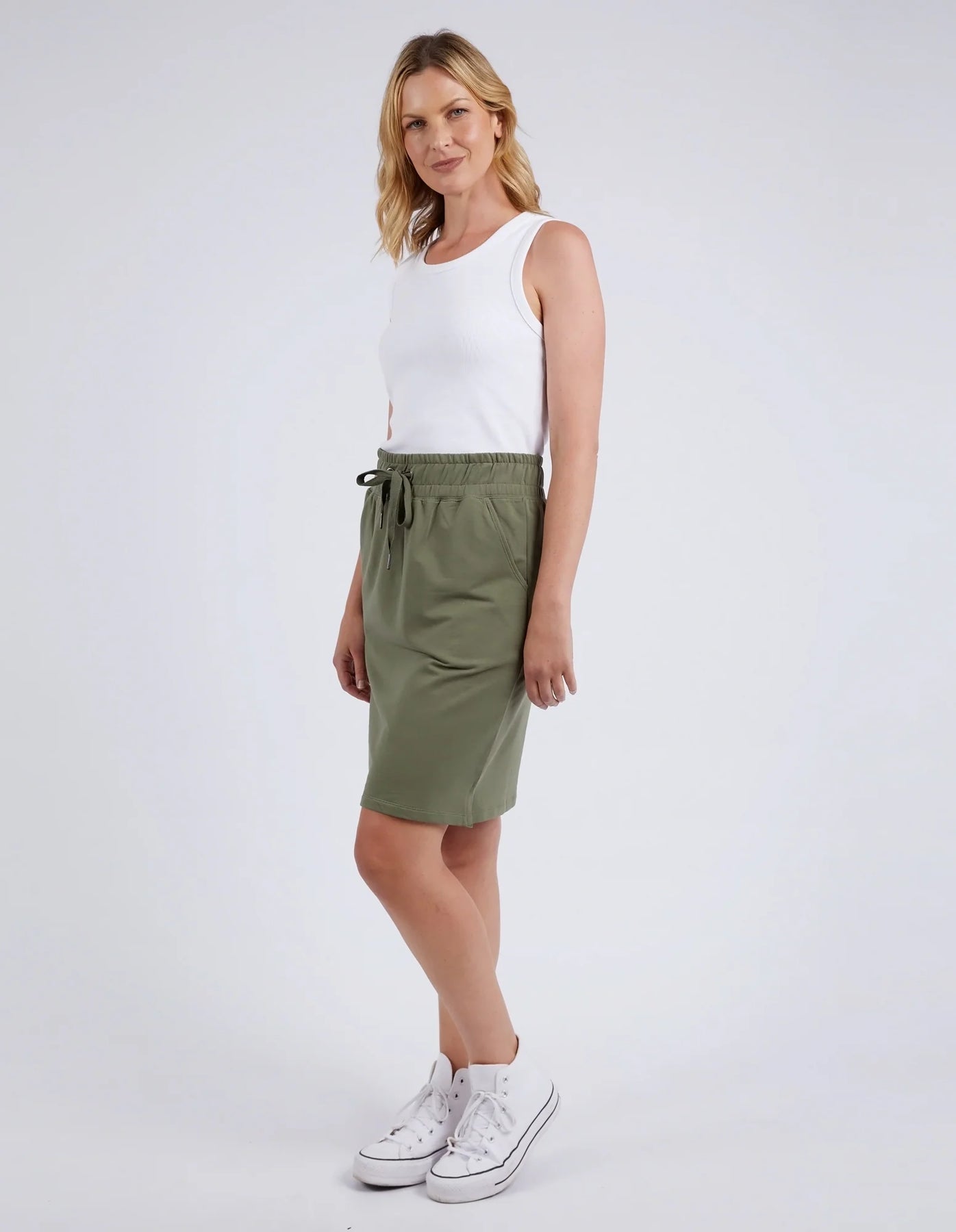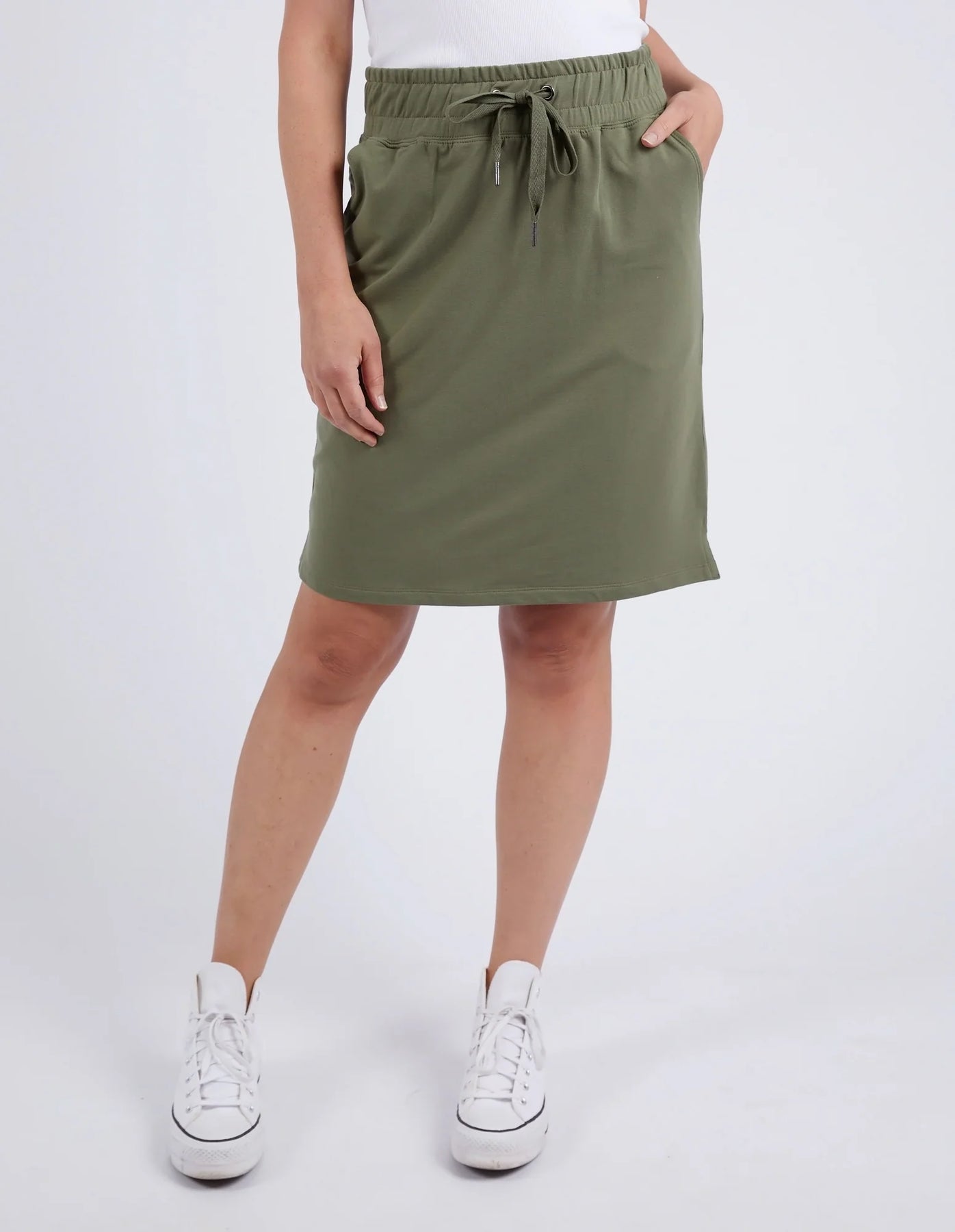 Regular price $69.95 Save $-69.95The Coby Skirt is a versatile wardrobe essential designed for effortless spring and summer styling. Crafted from soft unbrushed French Terry, this classic piece features a comfortable elastic waistband with tie detail for a customizable fit. Practical side splits enhance mobility, while functional slant pockets provide convenient storage. Perfect for throw-on-and-go dressing, this skirt combines comfort with understated sophistication. Available in assorted colours to suit your personal style.