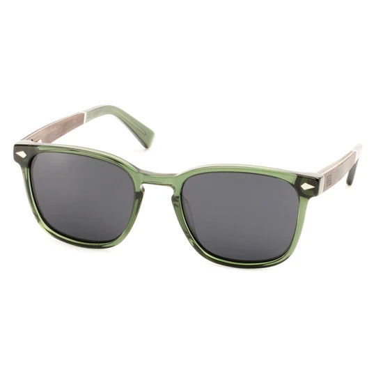 Make a style statement with Eddie. The classic square sunglasses that fuse vibrant, transparent acetate frames with the natural warmth of multi-layer wood temples is our best selling style. Choose from striking emerald green, tortoise or translucent grey frames, each paired with handcrafted ebony, maple, and walnut wood temples with acetate tips. Eddie is designed for the lovers of refined classic comfort, in a unique hybrid wood and acetate style.