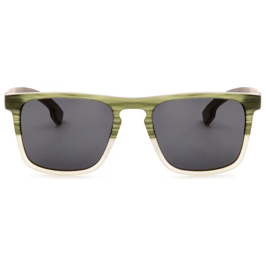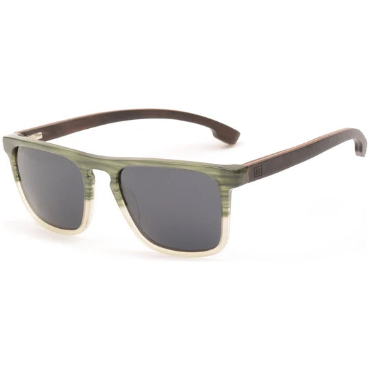 Bold Flat Top Sunglasses – Emerald, Grey & Amber Hybrid Acetate & Wood Sunglasses